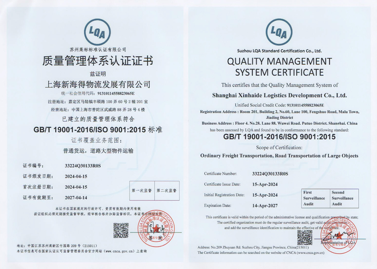 新海得物流嚴(yán)格按現(xiàn)代物流操作流程進(jìn)行標(biāo)準(zhǔn)化運(yùn)作。已通過(guò)國(guó)際質(zhì)量管理體系ISO9001:2015體系認(rèn)證。運(yùn)用健全的客戶(hù)服務(wù)管理系統(tǒng)、車(chē)輛管理系統(tǒng),財(cái)務(wù)管理系統(tǒng)。在查詢(xún)、監(jiān)控、追蹤、結(jié)算等方面與客戶(hù)做到無(wú)縫對(duì)接,打造了專(zhuān)業(yè)高效的客戶(hù)服務(wù)體系。